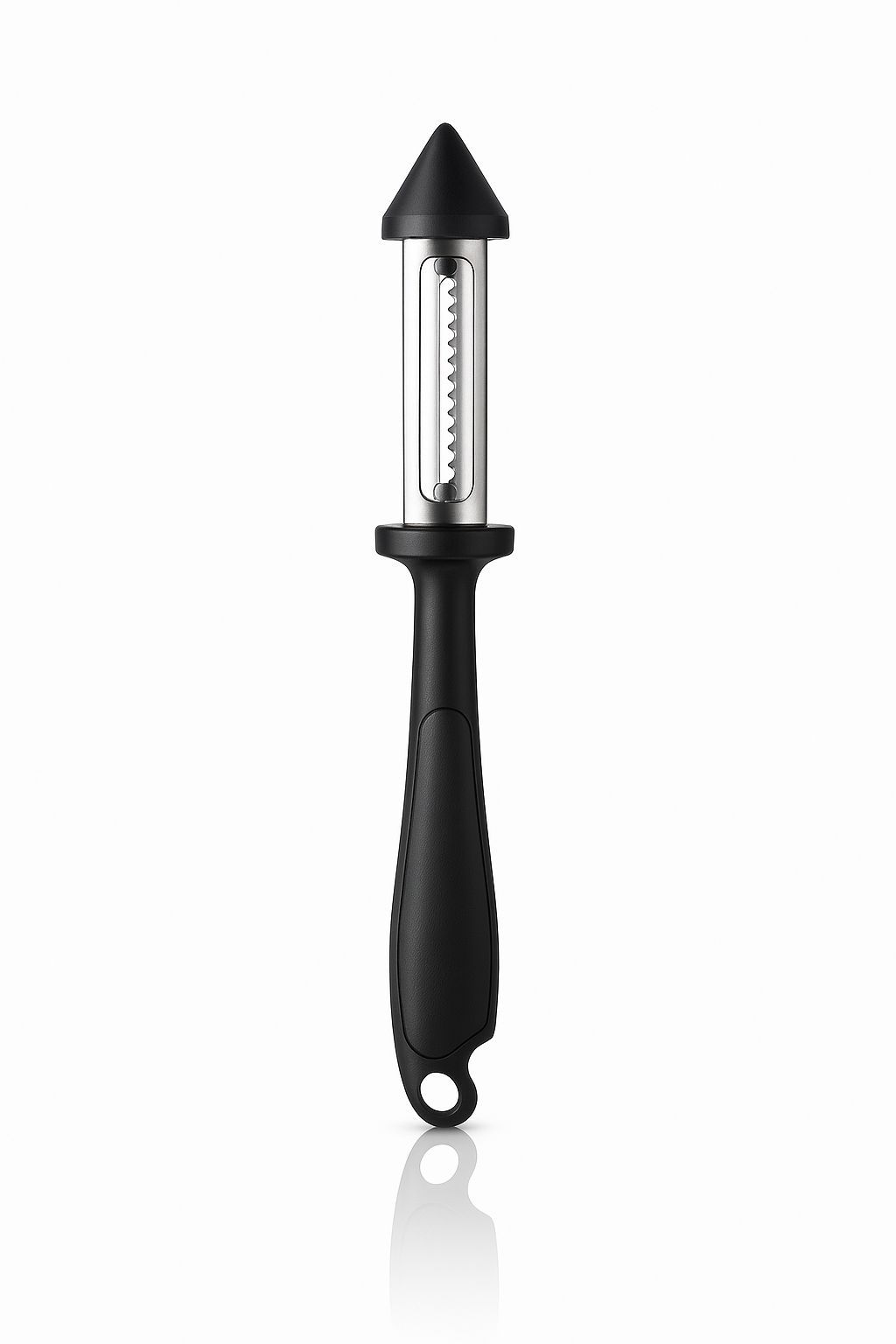 مقشارة لون أسود تجمع بين الأداء العالي والتصميم الأنيق الذي يضفي لمسة من الاحترافية على مطبخك. مصنوعة من مواد عالية الجودة، تضمن الأداة سهولة الاستخدام مع مقبض مريح وقوي يمكن الاعتماد عليه أثناء التعامل مع مختلف أنواع الفواكه والخضروات.